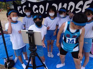 会場と6年生の教室(音楽室)をzoomでつなぐ試みは大成功でした。webカメラ越しに入賞を報告したり,反対のカメラに切り替えて競技の様子を中継したりしていました。教室も大盛り上がりだったそうで,分断された体育祭でも思い出の共有ができたようです。