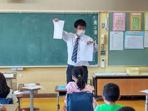 1校時,2年生の教室では,夏休みの課題について説明をしていました。学校から「夏休み国語作品応募一覧」「夏休み図工作品応募一覧」を配付しました。どれかを選んで取り組むように私も終業式の式辞で話しました。