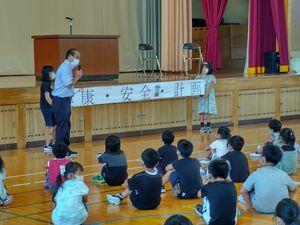 その後,生徒指導担当のS先生から夏休みの暮らしについて「健康」「安全」「計画」に心掛けて楽しい夏休みを過ごしてくださいと,お話がありました。暑い体育館でしたが子供たちの聞く態度も大変立派でした。1学期頑張りましたね。安全で楽しい夏休みにしてください。