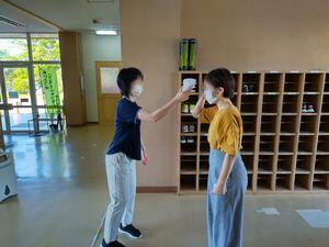 私たち教職員も,教室での引き渡しの手順,昇降口での検温等の対応,駐車場の整理などについて確認することができました。