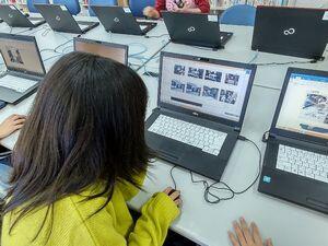 この学習がスタートしたころ,画像の貼り付け方などは事前に説明動画を作って視聴させたのですが,見ただけでは身に付くはずもなく,共有フォルダから班の写真フォルダがなくなるなどのトラブル多発で,まだ完成にこぎ着けていません。(その前は,「学習用共有フォルダ」が1TBの容量オーバーでファイルが開けないなどのトラブルもありました。)