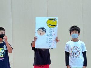 「ひ」「み」と続き,3枚目は下のように「こ」でした。全員で「卑弥呼の歯がいーぜ」になります。給食委員会の子供たちは,卑弥呼になぞらえて噛むことの効果を紹介しました。