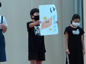 今日の業前,給食委員会担当の児童集会がありました。給食委員会は6月4日~10日が歯と口の健康週間だったことから,噛むことの大切さについて紹介しました。