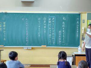 2年生は「名前を見てちょうだい」の音読を,1年生の前で,そして全校の前で発表する予定です。朝の会の時間に教室を回っていたら,4校時そのための練習をするので来てくださいと2年1組からお誘いを受けました。