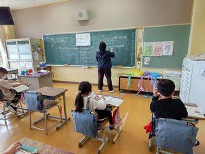 完成したグルーブは思わずピースサイン。振り返りでは「『1㎥』の立方体が1mの長さでのテープでできていました。大きさがよく分かりました」などの考えが発表されました。私も一緒に作って楽しかったです。
