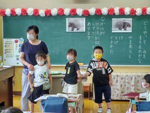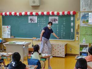 2校時,1年1組の国語,「どうやって みをまもるのかな」という説明文の学習を参観しました。