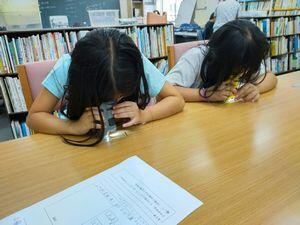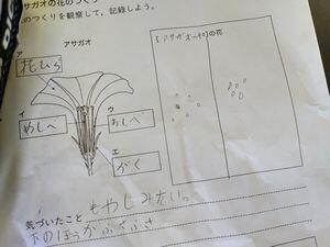 顕微鏡を使って観察した花粉の形を,子どもたちはワークシートにしっかり記録していました。