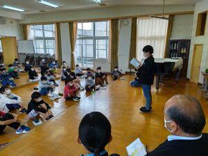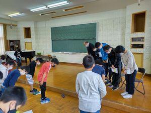 4校時,5年生の明日からの野外活動の結団式を行いました。司会はさわやかのY君,先生方をフルネームで紹介する丁寧な進行です。私からの話の後,5年生を代表して1組のY君が決意を述べました。
