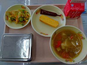 今日の給食は,公立高校の入試を控えている中学3年生のみなさんを,応援するメニューです。「厚焼きたまご」は,たまごの語呂合わせで「たくさん まるとって ごうかく」の気持ちを込めました。