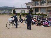 気仙沼警察署,交通指導隊,PTA愛育部の皆さんの御指導と御協力をいただき,春の交通安全教室を行いました。また,持参した自転車の車両点検を行いました。