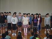 5月30日(火)の朝会では,6年生が国語の教科書に掲載されている詩「いのち」の音読発表しました。詩に込められた作者の思いや情景をとらえて,抑揚をつけて音読暗唱することができました。音読暗唱終了後に,熊谷久恵先生から,「長い詩をしっかり暗記できたことや男女で分担して読むなどの工夫が見られたことに感心しました。」という講評をいただきました。