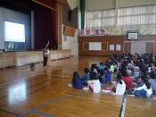 また,生徒指導担当の先生からは,6月の生活目標「みんなと仲良くしよう」について,犬と猫など,様々な種類の動物たちが仲良くしている写真をもとにお互いの心をひきつけ合う「心のじしゃく」についてのお話がありました。子供たちは,相手の気持ちを考えて心をつなぐことの大切を感じているようでした。