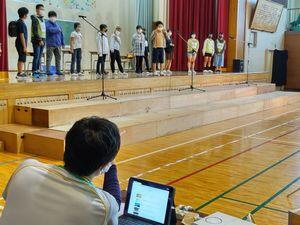 本来は事前のワークショップなども計画されていましたが,コロナ禍の中で縮小され,子どもたちの参加は,6年の代表児童が口上を述べるだけになってしまいました。ほぼぶっつけ本番でしたがMさんがしっかり行いました。