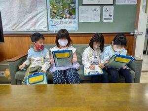 2,3校時,2年生の子供たちが,1年生を引き連れて面瀬小学校を案内しました。案内するのは,体育館,多目的室,家庭科室,保健室,職員室,イングリッシュルーム,理科室,図書室,音楽室,そして校長室です。