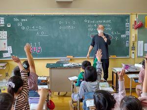 もう一つの注目点は,「0をどんな数でわっても答えは0になる」というまとめを使えば簡単に問題が解けることを意識づけたところです。「0÷3=0」のあとに書いた問題は「0÷13752=」です。子供たちは全員自信をもって挙手をし,「0」と答えました。同時に算数を学ぶ意義も感じながら。