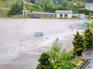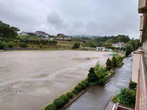 昨日の午後,体育主任のR先生と水取りをして「上から降らなければ何とかできそうだ」と思われる状況まで回復できたのですが・・・・・残念です。