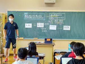 3校時,5年2組の国語の授業「動物たちが教えてくれる海の中のくらし」を参観しました。この授業のめあては「要旨を明らかにして,話の内容をみんなに伝よえう」です。