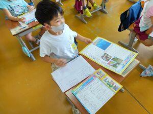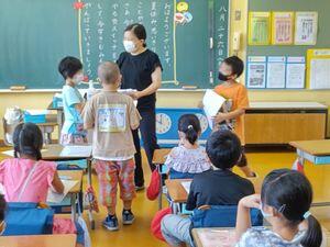 始業式は2校時にリモートで行いました。代表の1年Tさん,4年生のSさんが夏休みの思い出や2学期に頑張りたいことをしっかり発表しました。とても立派でした。
