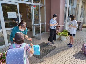 宮城県の緊急事態宣言を受け,本市の「学校における地域感染レベル」が1段階引き上げられました。これに伴い本校の対策も強化しているところです。これまで教室で行っていた健康観察カードのチェックを昨日から昇降口でするようにしたのもその一つです。