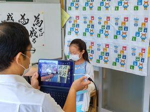 3校時,今日は6年生が「なんちゃってzoom」でリモート授業の練習です。校長室にはNちゃんとIちゃんが来てくれました。