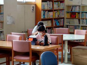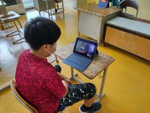 音楽室で4年生が勉強していたので,6年生は校長室の他に,少人数教室,図書室に散らばったようです。昇降口や階段の踊り場でzoomをつないだ子もいました。