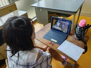 感染拡大によるリモート授業に備え,8月中に「なんちゃってZoom」の授業をするように先生方に指示しました。これは,校舎内に分散した子どもたちとZoomをつないで行う授業です。今日の3校時,早速5年2組が協力してくれました。