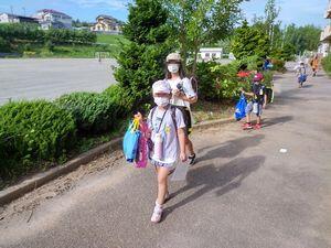 右の写真の姉妹は,昨日苦労したからでしょうかカードを手に持って昇降口に向かって歩いてきました。考えましたねー。遠くから歩いてくる子は手持ちだと危ないのでお薦めはしませんが,ランドセルからすぐ出せるように入れておく工夫があると良いかもしれません。