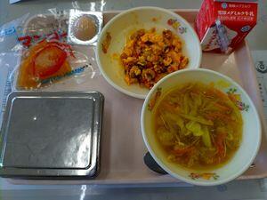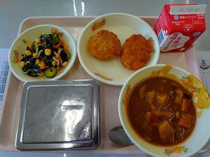 子供たちの口に入る前に安全を確かめるため毎日検食をしています。いつも一人で食べるので寂しいのですが,今日は,本来は1つセレクトして食べるはずのとんかつとエビカツを両方食べました。午後の仕事,いつもより頑張れそうです。