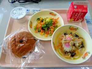 チョコレートパン 花野菜サラダ ちゃんぽんうどん 蔵王レアチーズケーキ 牛乳