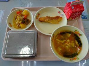 今日の給食は,赤魚の西京焼きです。味わっていただきましょう。