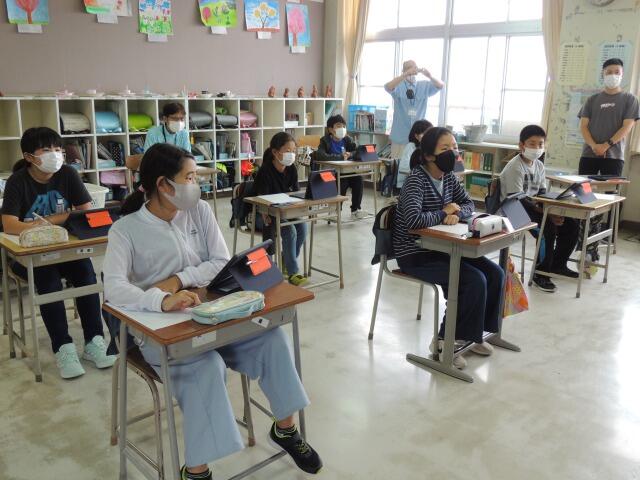 牡蠣の養殖をしている地域の方(本校の保護者でもあります)から牡蠣について講話をいただきました。牡蠣の養殖の歴史や養殖の仕方について詳しく説明していただきました。また、稚貝をつけたホタテの殻を付けるロープや、牡蠣剥きに使う手袋を実際に見せていただきました。児童はメモを取りながら、熱心に聞いていました。次回は実際に養殖している現場を見せていただきます。楽しみですね。