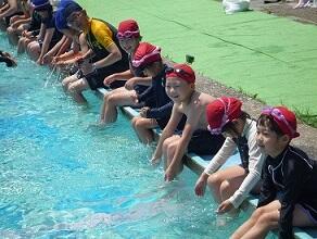 今年度の水泳学習を開始しました。1年ぶりの水泳学習に,子どもたちは楽しみながら取り組んでいます。1,2年生は,初めての水泳学習となります。水の感触やプールの深さなどを確かめながら,笑顔で学習に取り組んでいます。