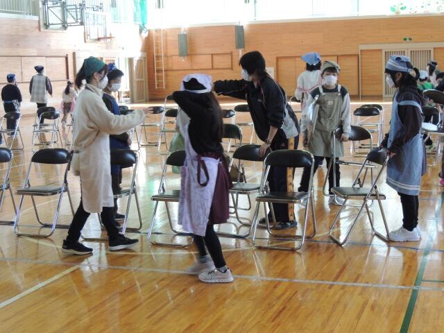 本日3校時、1年生を迎える会を実施しました。1年生の入場後、5年生が作ったくす玉が見事に割れ、歓迎の言葉が現れました。6年生のクイズを交えた学校紹介の後、全校児童で集合ゲームをしました。生まれ月や好きな季節、好きな天気でグループを作り、自己紹介しました。3年生からメダルのプレゼントをいただき、その後、1年生が一人ずつ自己紹介をしました。とっても上手に自己紹介ができました。会の後に、児童館で子どもたちの活動をサポートしていただいている「かめりあくらぶ」の皆様から、移動ポケットのプレゼントをいただきました。3人の1年生は「楽しかった!」と笑顔で感想を言っていました。