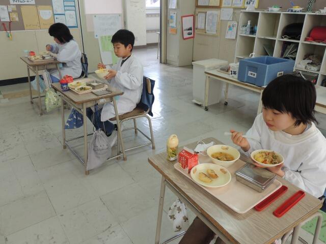 今日の給食は,メカジキの照り焼き、すき昆布の炒め物、じゃがもち味噌汁です。今日は6年生の教室。もりもり食べる6年生の姿がもうすぐ見られなくなるのかと思うと寂しいですね。