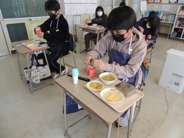 令和4年度の「今日の給食」コーナーも残すところ2日となりました。今日の給食は、鶏肉とゴボウの味噌炒め、すき焼き風煮、オレンジです。今日は3年生の教室。いただきますに続いてWBC日本優勝を祝して牛乳で乾杯しました。それにしても、すごい試合でした!