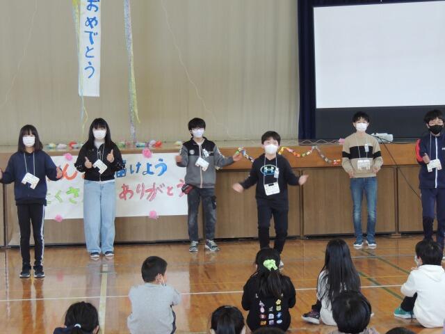 修了式に先立ち、来年度転校するお友達を紹介し、みんなで激励の拍手を送りました。修了式では各学年の代表児童が修了証書と修了祝い品を校長先生から受け取りました。代表児童はもちろん、座席で一緒に礼をする児童も大変立派でした。その後、校長先生から、進級する学年についてのお話や、大島小学校の目指す子どもの姿についてのお話がありました。毎日全員が元気に登校できたことがうれしかったというお話もいただきました。次に4年生・5年生の代表児童が「私の挑戦」「1年を振り返って」という題でこの1年を振り返りました。(詳細は「学校便りコーナー」の17号をご覧ください。)今年の頑張りや来年への意欲が伝わる良い発表でした。元気に校歌を歌い、修了式が終わりました。最後に生徒指導担当の先生から春休みの安全な過ごし方についてのお話がありました。楽しい春休みを過ごし、4月に元気に登校してくることを楽しみにしています!