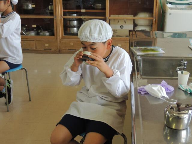 茶の入れ方の学習です。お湯を沸かす手順や急須の使い方を確認し、一人ずつ自分のお茶を入れました。家で入れたことがある子も何人かいました。自分で入れたお茶はおいしかったようです。これからは、お茶入れのお手伝いもできますね。