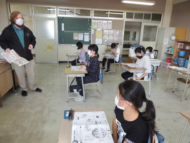 今年初めての外国語。ALTの先生と3・4年生の外国語活動で学んだことを復習しました。「Look at ・・・? どんな意味ですか?」ジェスチャー付きの質問に「目つぶし?」見るのジェスチャーって難しいかも。