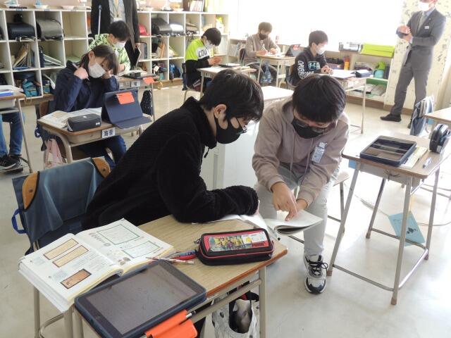 3校時の様子をお伝えします。1年生は算数「かたちあそび」三角形5枚を使って「ヨット」の形を作っていました。2年生は生活科「じぶんものがたり」を完成させて製本していました。友達の作業を手伝ってあげる子もいました。3年生は外国語活動、動物の名前で自己紹介ゲームに挑戦していました。英語だからか覚えるのが余計に難しいようです。4年生は海洋教育でお世話になっている講師の先生への感謝の手紙を書いていました。5・6年生は合同体育「ソフトバレーボール」ワンバウンドOkの変則ルールでしたが、その分ラリーが続き、熱戦が繰り広げられていました。6年生は卒業まで残すところ10日登校日では8日となりました。