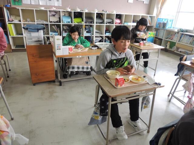 今日の給食は、コッペパン、コールスローサラダ、ホワイトシチュー、ポークソテーです。今日は5年生の教室。いただきますをした後、「パンッ!」という破裂音。コッペパンの袋を押しつぶして開けていました。ある子が後に続こうとしましたが、なかなか割れません。「私、握力が12Kgしかないんです。」頑張ろうね・・・て、あまり勧めることではありませんね。