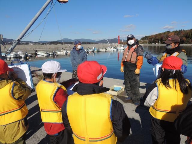 前回の牡蠣の温湯処理の学習に続き、今日は水揚げと牡蠣剥き体験の学習に取り組みました。また、今回は気仙沼教育事務所より、所長と職員の方に視察していただきました。船で筏まで行き、水揚げの様子を見せていただきました。昔は人力で行っていた作業でしたが、ロープの巻き取りから、牡蠣を外し、かごに入れるまで機械がやってくれます。水揚げの後、浄化した海水できれいにする課程を教えていただき、その後、いよいよ牡蠣剥き体験です。牡蠣剥き用のナイフの使い方や貝柱の剥がし方を教わり、一人2個ずつ牡蠣を剥きました。やってみると難しく、身を傷つけないように慎重に作業していました。ここで働いている「剥きこ」さんは1個剥くのに5秒ほどと聞いて、児童は驚いていました。剥いた牡蠣を袋詰めしていただき、前回大橋の下で撮った写真のステッカーを貼っていただきました。最後に殻から剥いた牡蠣が生きている様子を見せていただいて、さらに驚く児童達でした。貴重な体験をさせていただき、ありがとうございました。