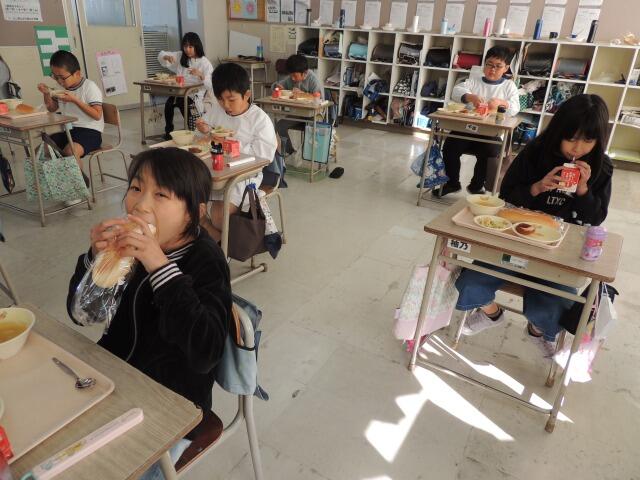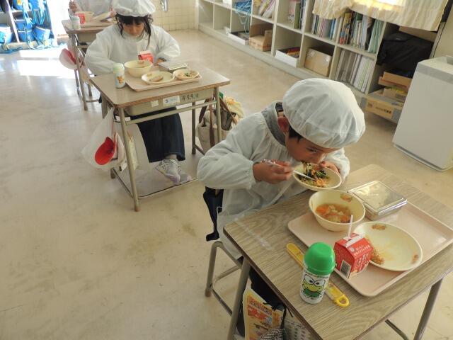 今日の給食は。鶏の唐揚げ、タコと海藻のサラダ、豆もやしと根菜の卵スープです。(申し訳ありません。給食の写真が撮れていませんでした。)今日は4年生の教室。ある男の子の話によると、給食を食べる頃になると,おなかが痛くなるほどおなかがすくそうで、それを聞いていた女の子が「あ、それ分かる。」とのこと。さすが育ち盛りですね。