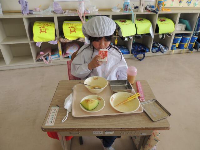 今日の給食は、チキンカレー、海藻サラダ、冷凍みかんです。今日は5年生の教室。「ミカン冷凍じゃなきゃいいのに!」ふつうのみかんがいいそうです。その後、知覚過敏の話しで一盛り上がりしました。