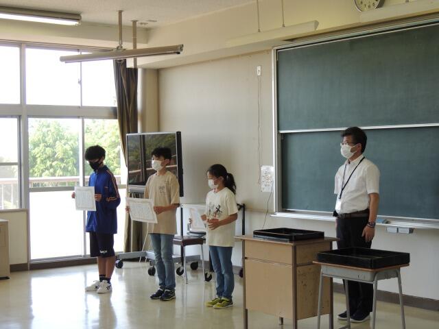 夏休み前最後の読み聞かせ会がありました。今日は高学年もブックトークをしていただきました。1年生から4年生までは、絵本の読み聞かせ。(1年生は担任による読み聞かせでした。)絵本の魅力に引き込まれるようにみんな真剣な表情で見入っていました。5年生はファンタジー作品の本の紹介。映画でもヒットしたおなじみの「ハリーポッターシリーズ」をはじめ、いろいろなファンタジー作品を紹介していただきました。6年生は古典の「奥の細道」を原文と現代語訳を比べながら紹介していただきました。夏休みの読書活動に向けて、良い機会をいただきました。