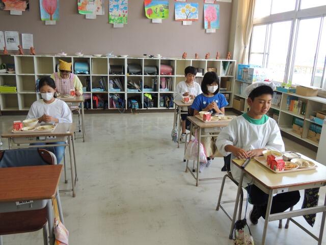 今日の給食は、五色そぼろ、七夕汁、七夕デザート(七夕メニュー)です。今日は、3年ぶりに給食試食会を実施しました。給食センターより栄養教諭の先生に来ていただき、メニューの説明や大島小学校の残食についてお話ししていただきました。(大島小学校は市内でもダントツで残食が少ないそうです!)1年生~3年生のたくさんの保護者の皆様が参加しきました。ホームページで毎日見ていただいている給食ですが、今日は実際に味わっていただきました。