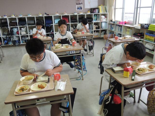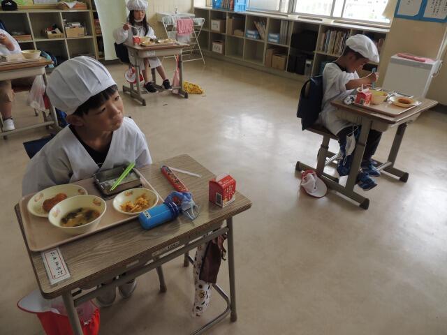 今日の給食は、小籠包、メンマの煎り煮、中華スープの本格中華メニューでした。今日は5年生の教室。準備をしていると、いつの間にか教室に蛍が迷い込んでいました。男子が踏んづけられたら大変と、手でやさしくつかみ外に逃がしてあげました。夜になったらお礼を言いに来てくれるかもしれませんね。
