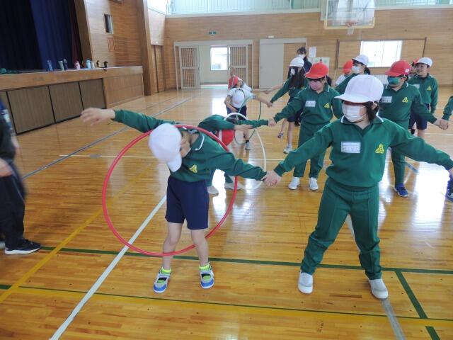 4・5・6年生の合同練習。「大島ソーラン演舞」の練習をしました。あいにく小雨がぱらつく中でしたが、元気いっぱいの舞に心が踊りました。大漁旗の法被を着て勇壮に踊る姿が今から楽しみです。