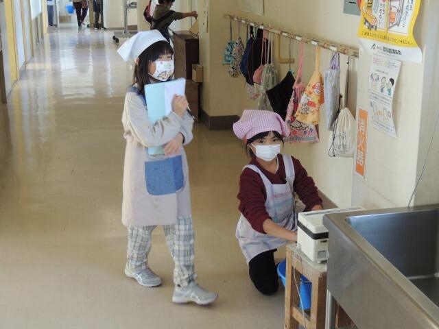 今朝は久しぶりに雨が降りました。その分、いくらか暖かかったです。今日も大島小学校の子どもたちは、一生懸命学習に取り組んでいます。1年生は図工、「くしゃくしゃしたら、だいへんしん!」いろいろな色のお花紙を丸めたり、ちぎったりして、作品作りをしていました。2年生は国語、「かさこじぞう」の読み取りです。挿絵を見ながら、お正月の買い物の様子を確認していました。3・4年生は合同体育、「跳び箱」です。まず、動画を見て、跳び越すイメージを確認してから、練習していました。友達にタブレットで自分が跳ぶようすを撮影してもらい、その後、自分の跳び方を確かめていました。5年生は図工、「水上不二の詩の感想画」を描いていました。冬休み前の下描きに彩色していました。同じ詩でも、描く児童によって違ったイメージの感想画になっています。6年生は理科、「水溶液の性質とはたらき」3種類の水溶液の特徴を調べる実験です。実験用のめがねを掛け、安全に配慮しながら取り組んでいました。