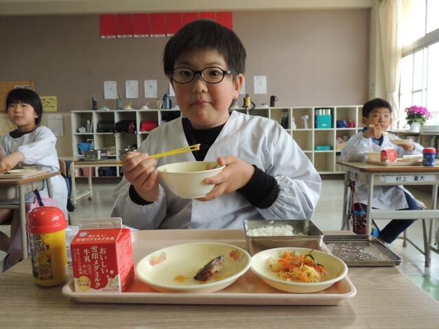 今日の給食は、3年生好きな献立ランキング第2位の「ピリ辛みそ汁」です。みんな喜んで食べていました。好きな献立ランキングの1位は何でしょう?「カレーライス」だそうです。「じゃあ、みんなは華麗(カレー)なる一族だね!」・・・シーン。今日も立派に黙食できました。