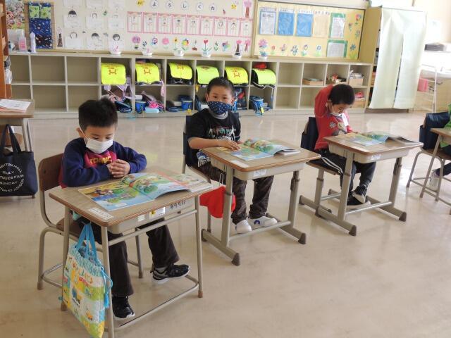 市立図書館から2名の職員の方にお出でいただき、図書館での本の借り方や過ごし方、移動図書館「おおぞら号」の利用の仕方について、紙芝居やペープサートで教えていただきました。その後は、楽しい絵本の読み聞かせ。お話の内容に興奮したり、見入ったりしながら、楽しく学習しました。